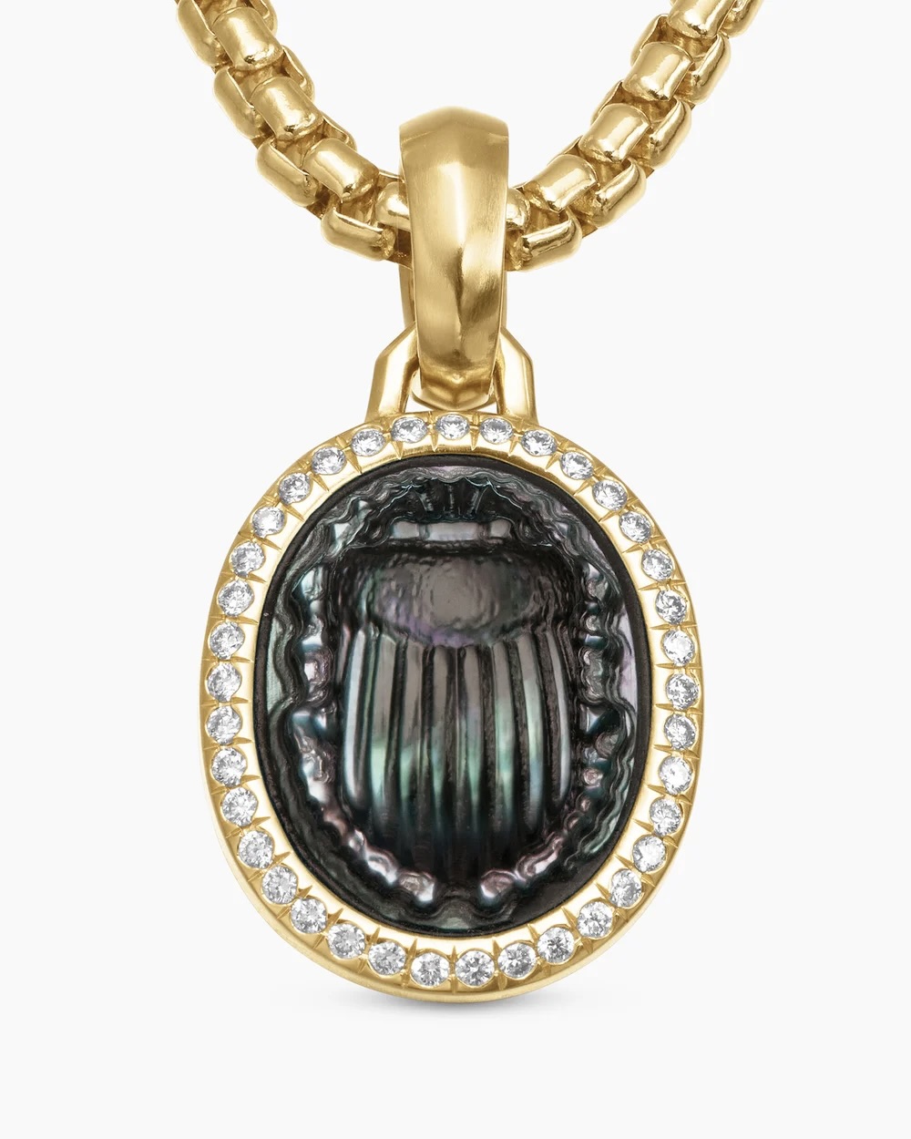 In high demand, Harwell Godfrey’s swiftly sold-out scarab pendants were inspired by the designer’s travels to Egypt. “The scarab is an iconic symbol of rebirth and transformation, which makes it such a powerful talisman,” she explains. “The fly was a more unexpected inspiration. I noticed it appearing frequently in hieroglyphs and learned that in ancient Egypt, it was used in military medallions to represent bravery and persistence. I love that idea. It reframes something we might overlook into a symbol of strength.”