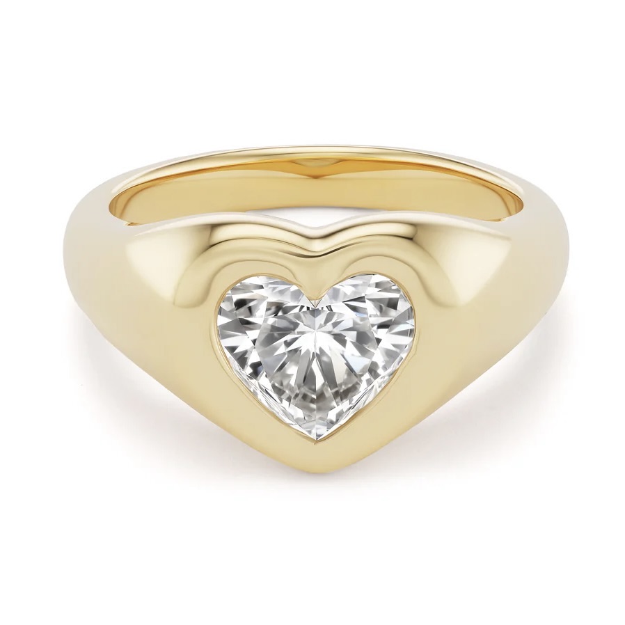 Whether you’re practicing self-love or expressing your devotion to another, the heart shaped diamond ring is the perfect way to celebrate love in all its forms. “A heart shape is an iconic shape for my business, and it is a shape I frequently use in my own pieces,” says Stephanie Gottlieb, founder of the eponymous jewelry brand. “It’s not a default choice in jewelry; it’s a creative decision. The wearer is embracing symbolism openly and confidently.”