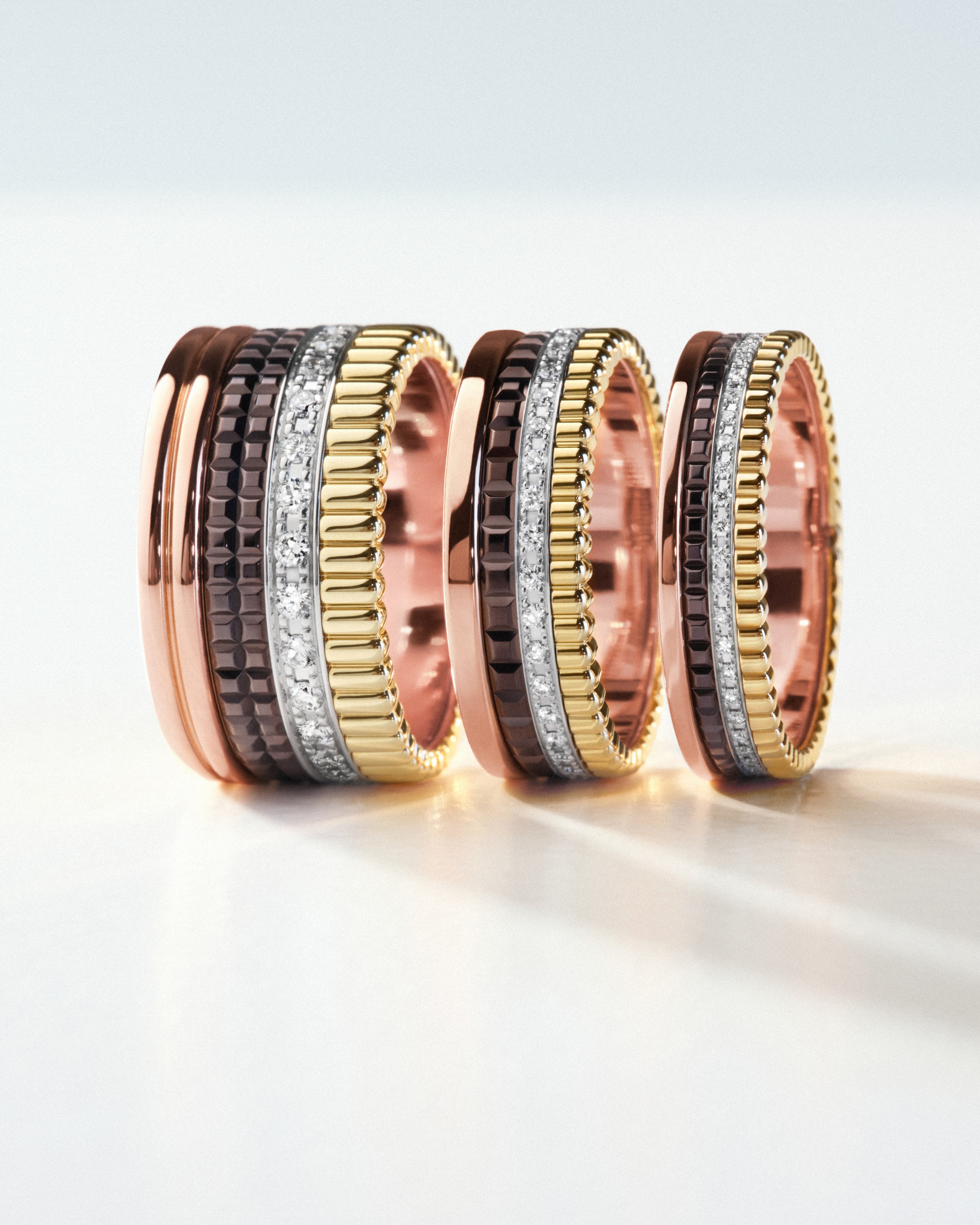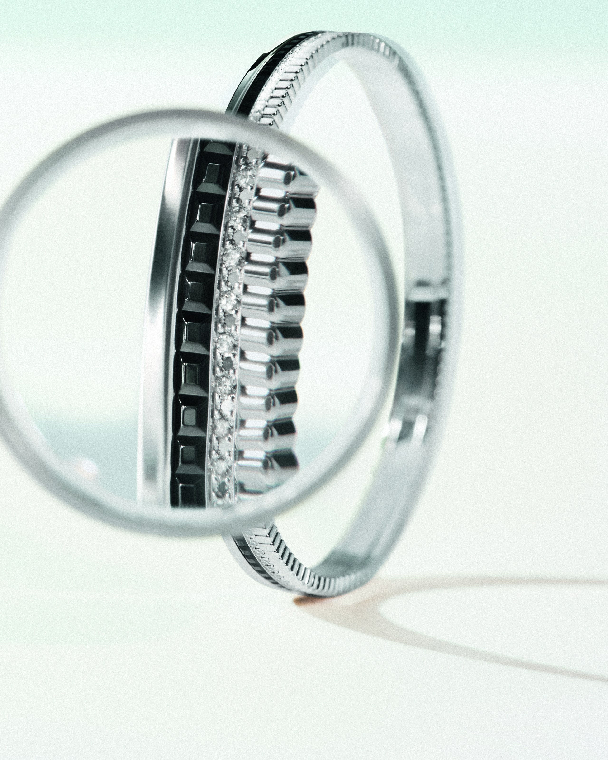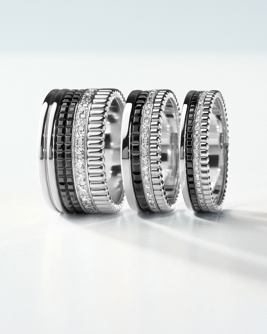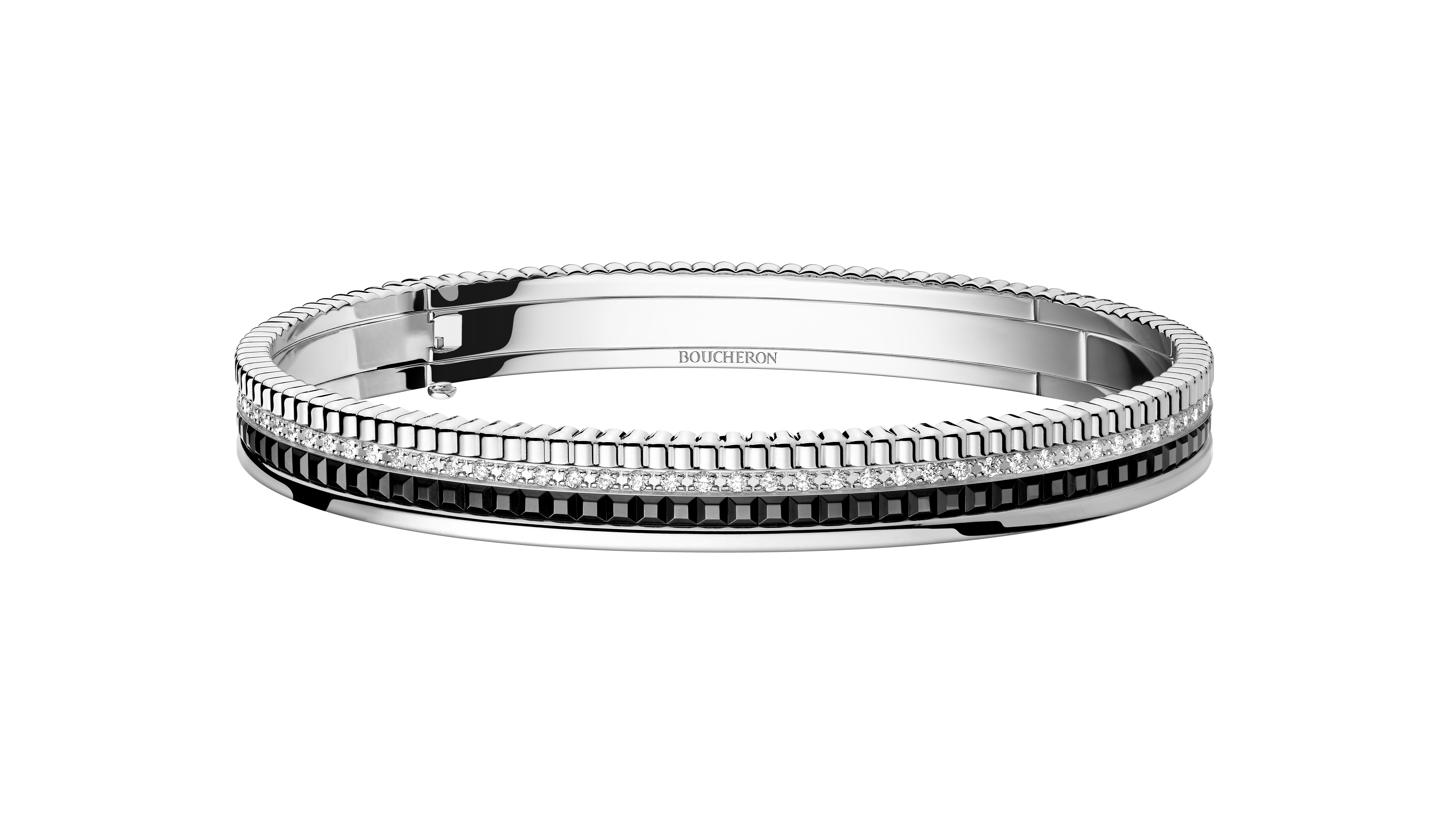 Cette variation accompagne une approche plus libre du style Quatre. Les bijoux se prêtent au jeu des accumulations, invitant à composer des combinaisons personnelles où les proportions dialoguent entre elles. Dans cette dynamique, la Maison introduit également un bracelet Quatre Black Edition, qui prolonge l’écriture graphique de la ligne dans un registre contemporain.