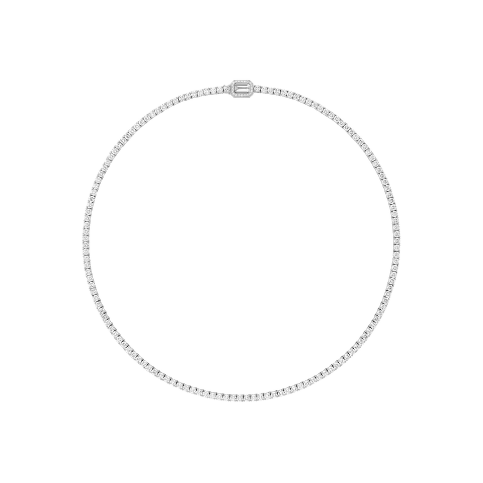 Anja Verderosa portait le collier Diamond Frequencies High Jewelry, accompagné des boucles d’oreilles et bagues Divine Enigma. Crédit Messika.