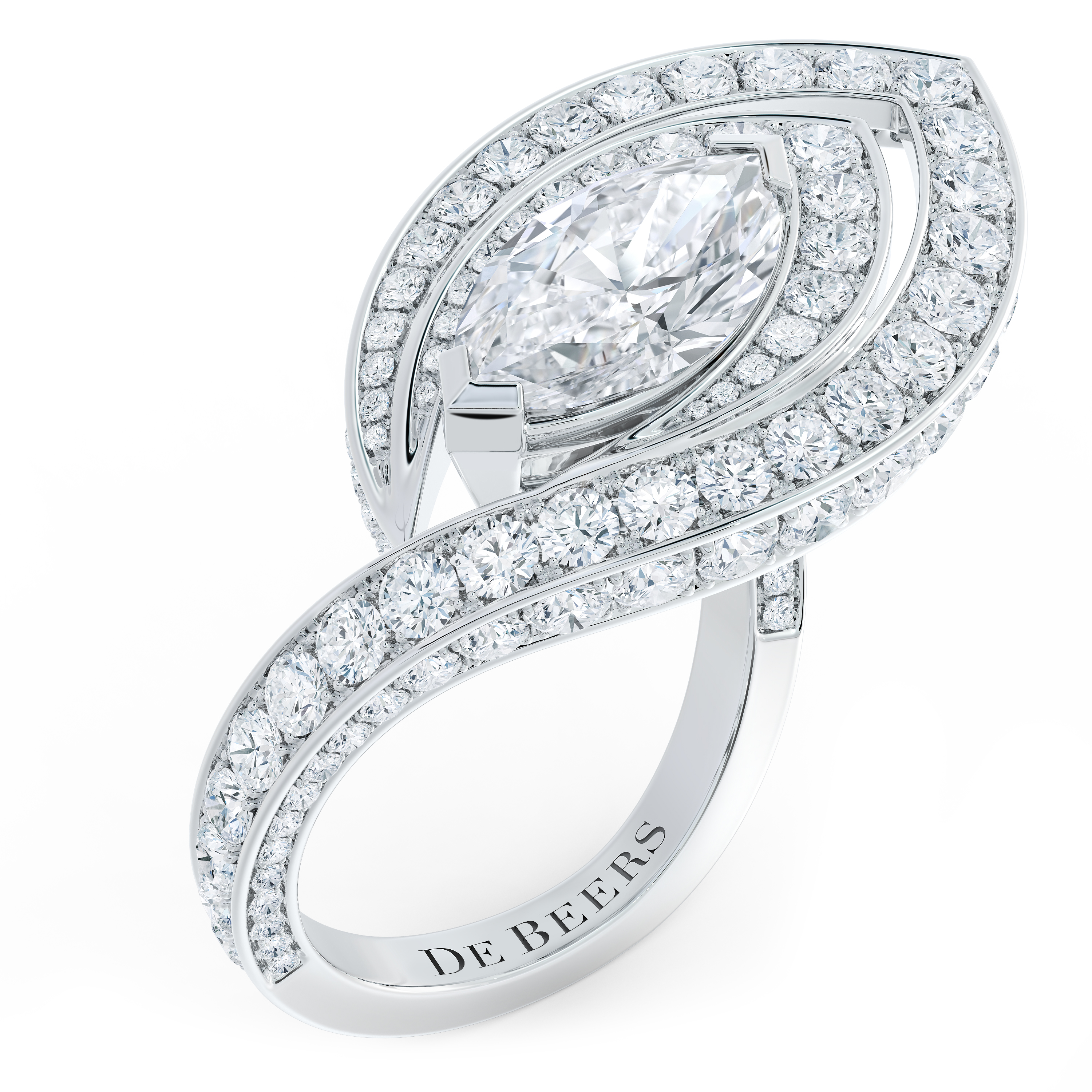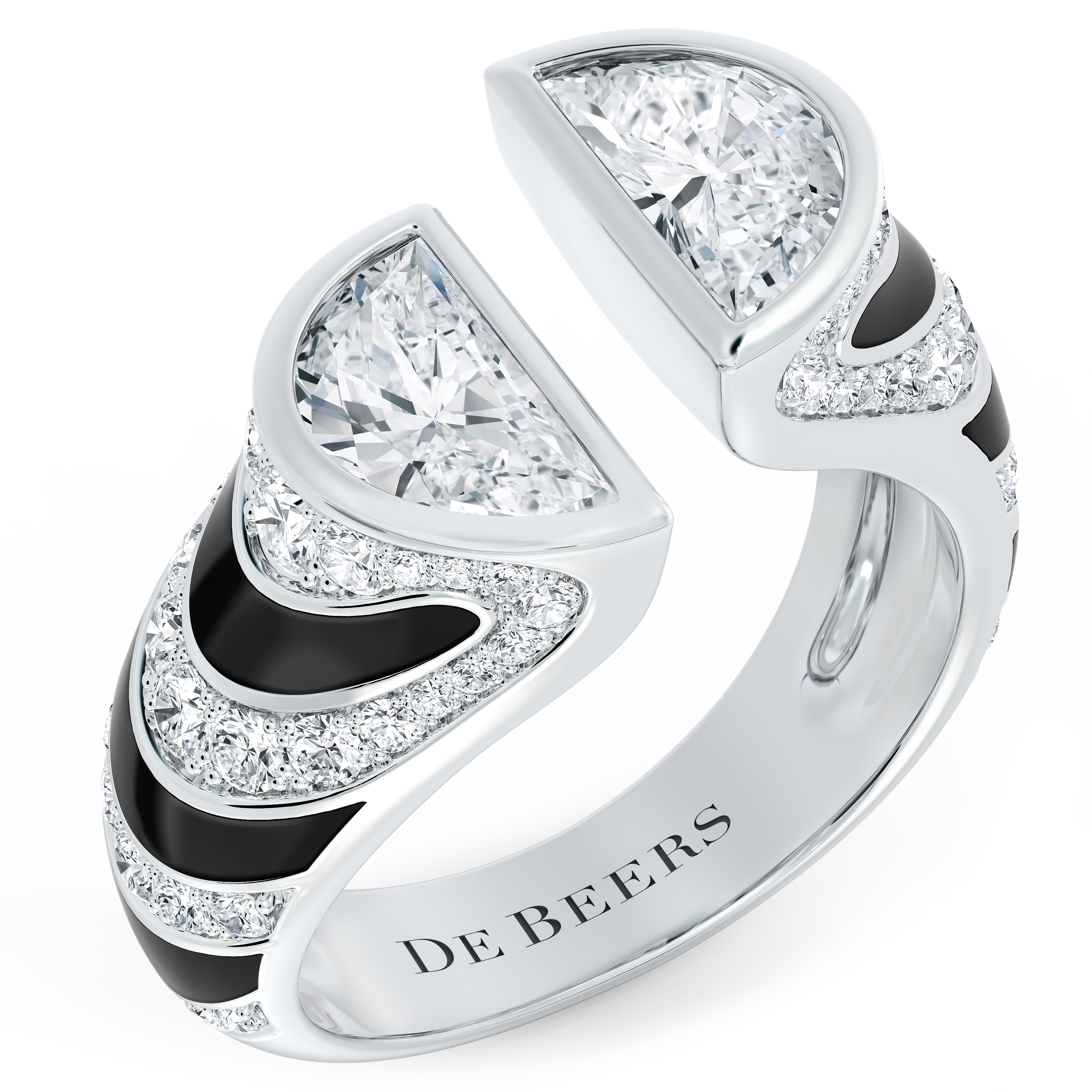 Isabelle Huppert portait les boucles d’oreilles Foundation en or blanc 18 carats et diamants, issues de la collection de Haute Joaillerie Essence of Nature, associées à une bague Toi et Moi Individuality et une bague Magnetism en or blanc 18 carats et diamants issues de la collection de Haute Joaillerie Forces of Nature, ainsi qu’une bague Shank en or blanc 18 carats et diamants. L’ensemble était sublimé par la Broche Enchanted Lotus en or blanc 18 carats et diamants De Beers London. Crédit Sébastien Frémont/Starface et De Beers London.