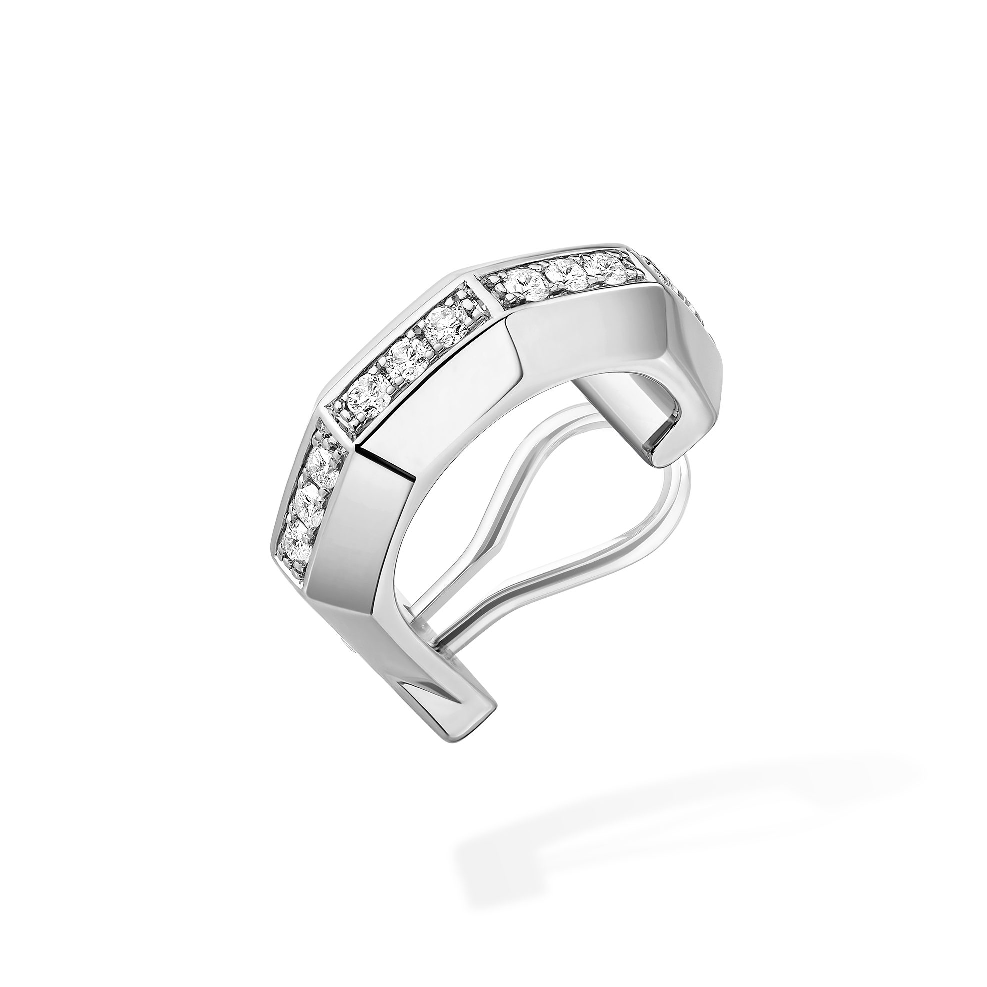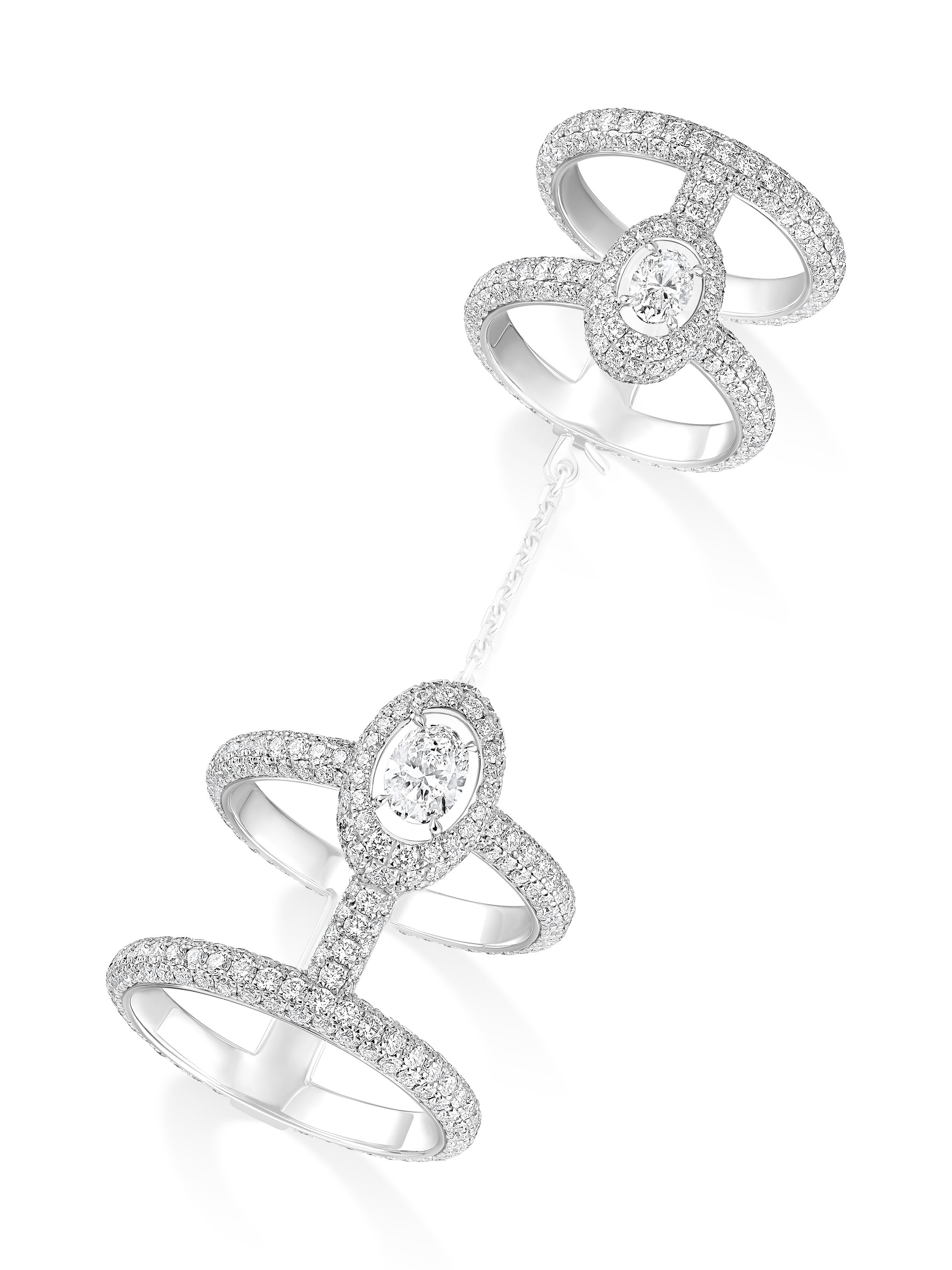Hafsia Herzi portait les bracelets, bagues et boucles d’oreilles de la nouvelle collection Moderniste de Messika. Crédits Messika.