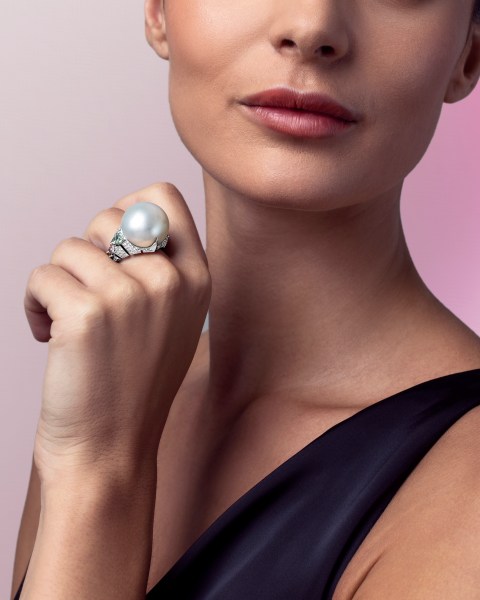 Certaines pièces reposent sur des découvertes peu communes. La bague Queen of the Sea s’organise autour d’une perle naturelle de plus de 41 carats, dont les reflets ont dicté une composition de diamants verts, roses et orangés. À l’inverse, la bague Radiant Lotus met en lumière un saphir Padparadscha de Ceylan, non chauffé, dont l’équilibre chromatique témoigne d’une connaissance ancienne de cette variété longtemps sous-estimée.