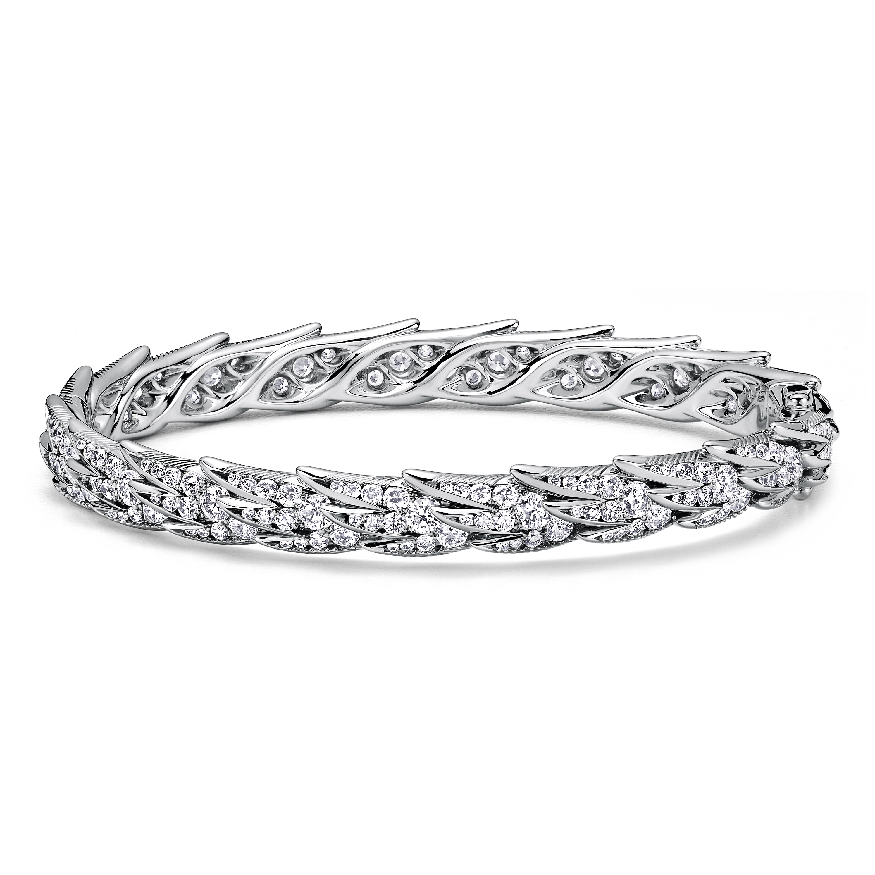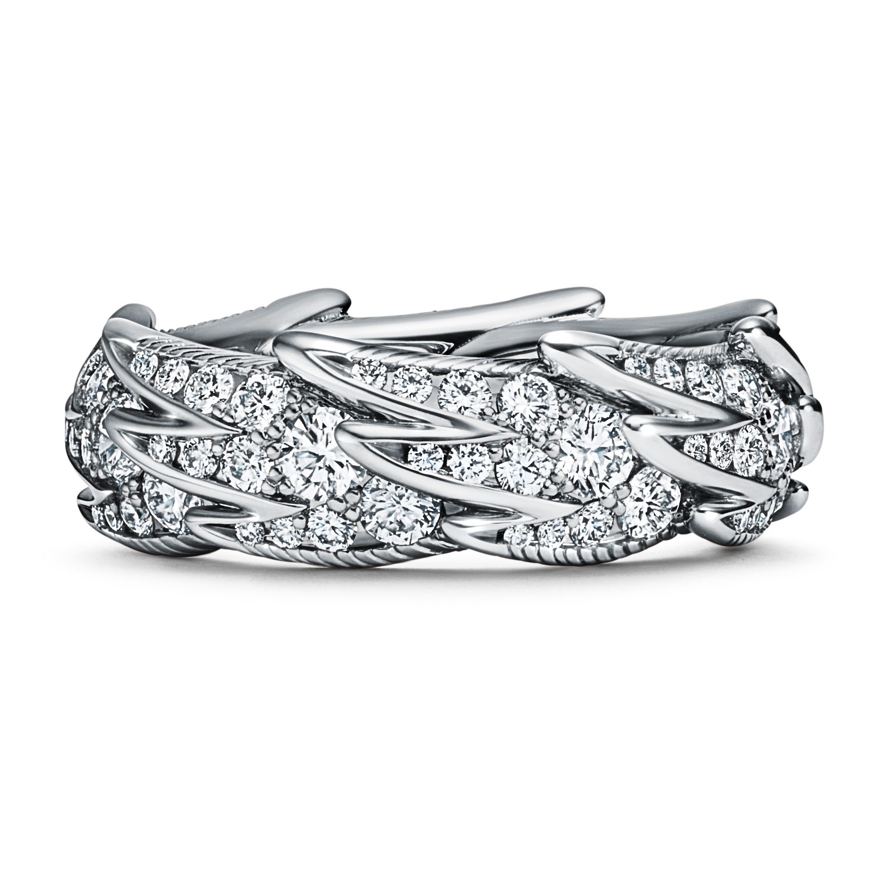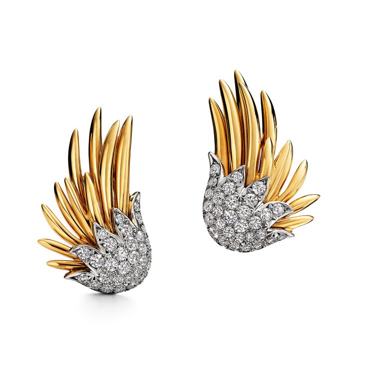Diane Kruger a choisi de porter la bague Wings large en platine et diamants, le bracelet jonc Wings large en platine et diamants et les clips d’oreilles Flamme en or jaune18 carats, platine 950 millièmes et diamants. Crédit Tiffany&Co.