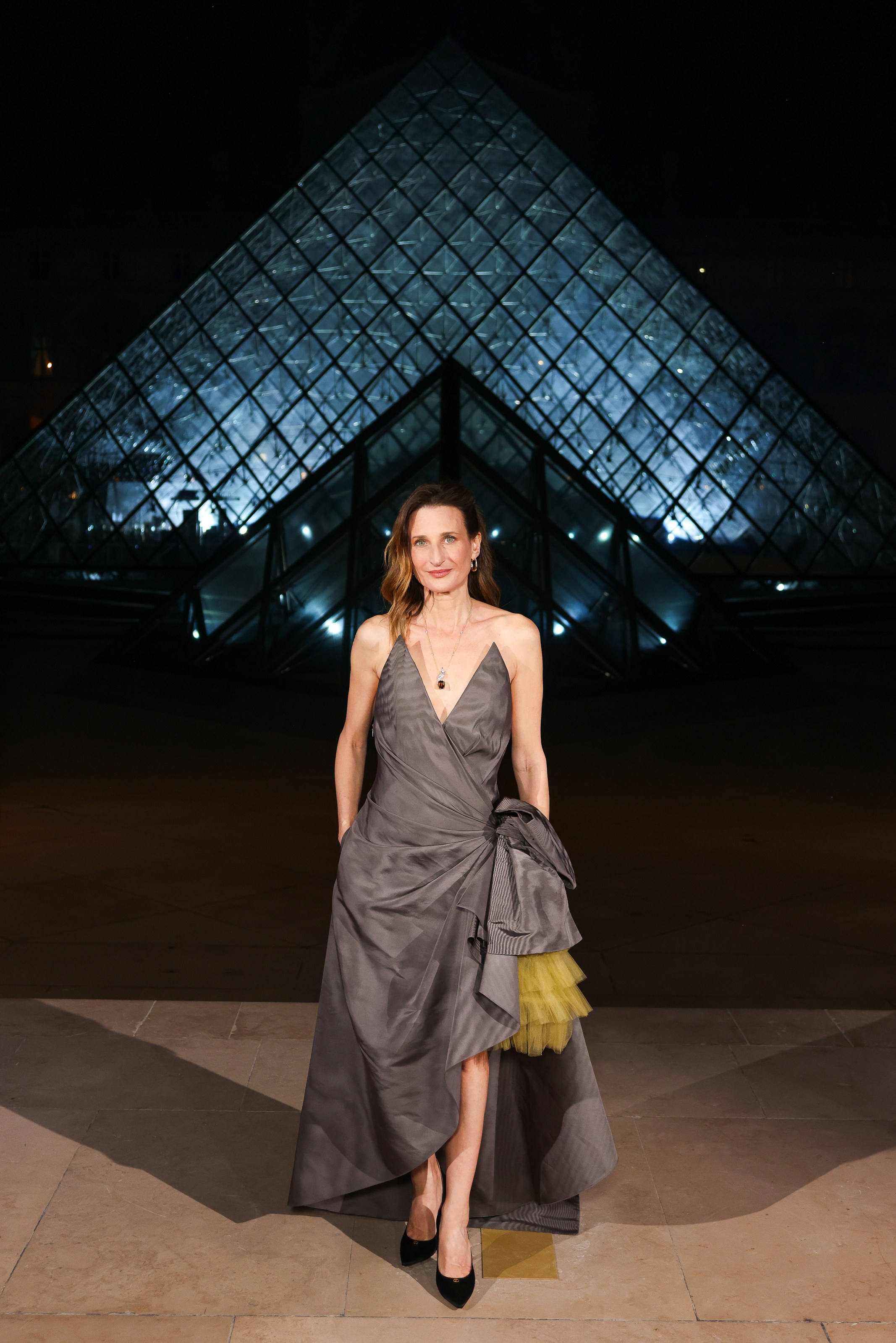 Marina Foïs, amie de la maison Louis Vuitton, portait à la fois une robe-bustier Louis Vuitton et des bijoux Louis Vuitton Haute Joaillerie. Crédits Louis Vuitton et Astra Marina/BFA.com