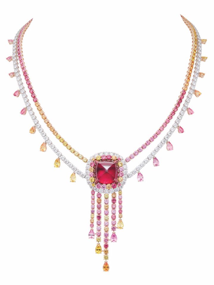 Les cinquante-sept créations composent une narration visuelle où les fleurs occupent une place centrale. Or, diamants et gemmes colorées se répondent dans une flore suspendue, dessinant un paysage sans gravité. Les Jardins Multicolores se déclinent dans des harmonies nouvelles, tandis que Dearest Dior adopte une palette plus enveloppante, enrichie par la profondeur nuancée de la tanzanite.