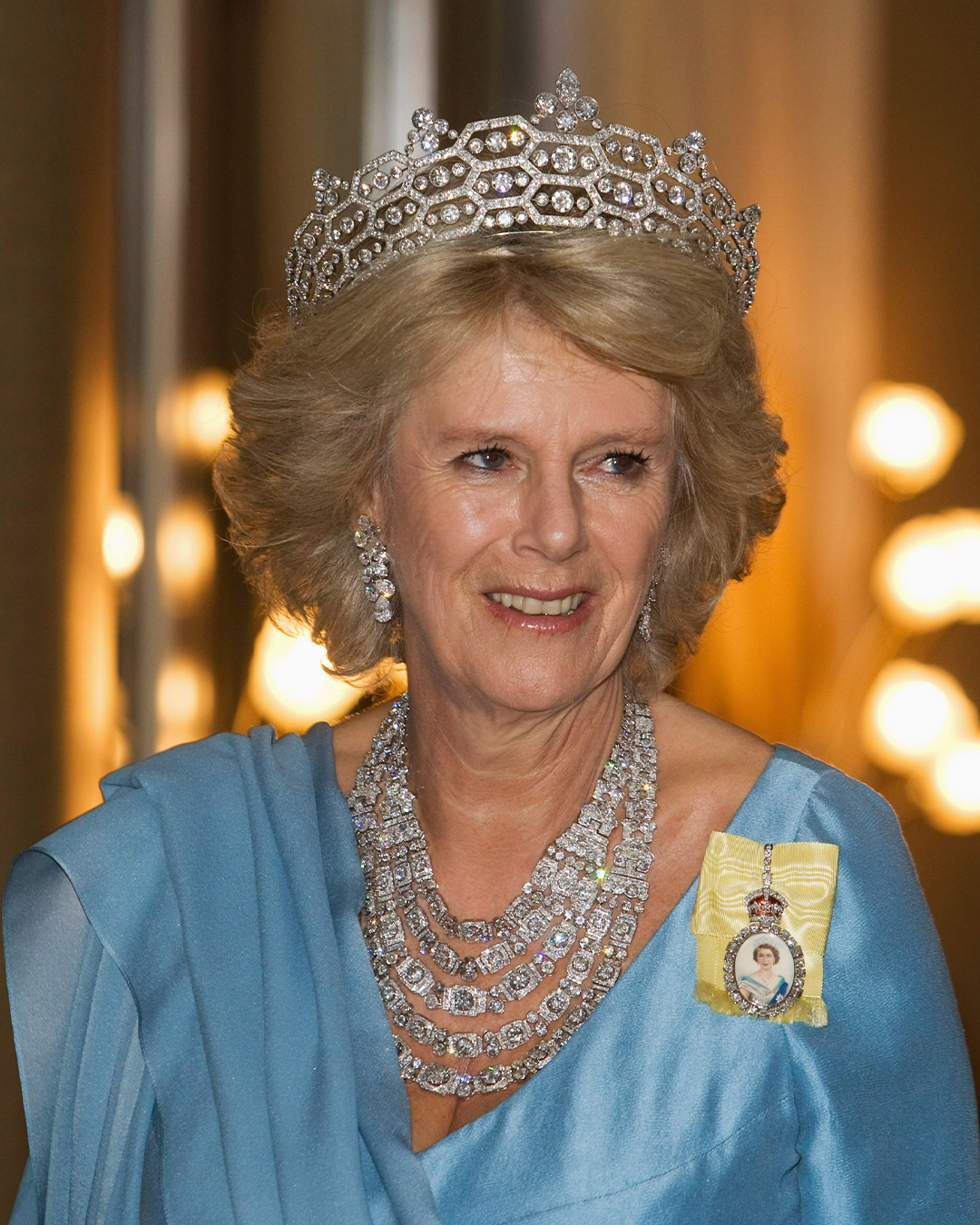 One of the most impressive and extravagant pieces Queen Elizabeth II loaned to Camilla during her years as Duchess of Cornwall, the Greville Diamond Tiara has become a standout in her regular rotation. The tiara, also known as the Boucheron Honeycomb Tiara, was commissioned by Dame Margaret Greville at Boucheron in Paris in 1921, using diamonds from a 1901 tiara, created by the iconic Parisian jeweler.