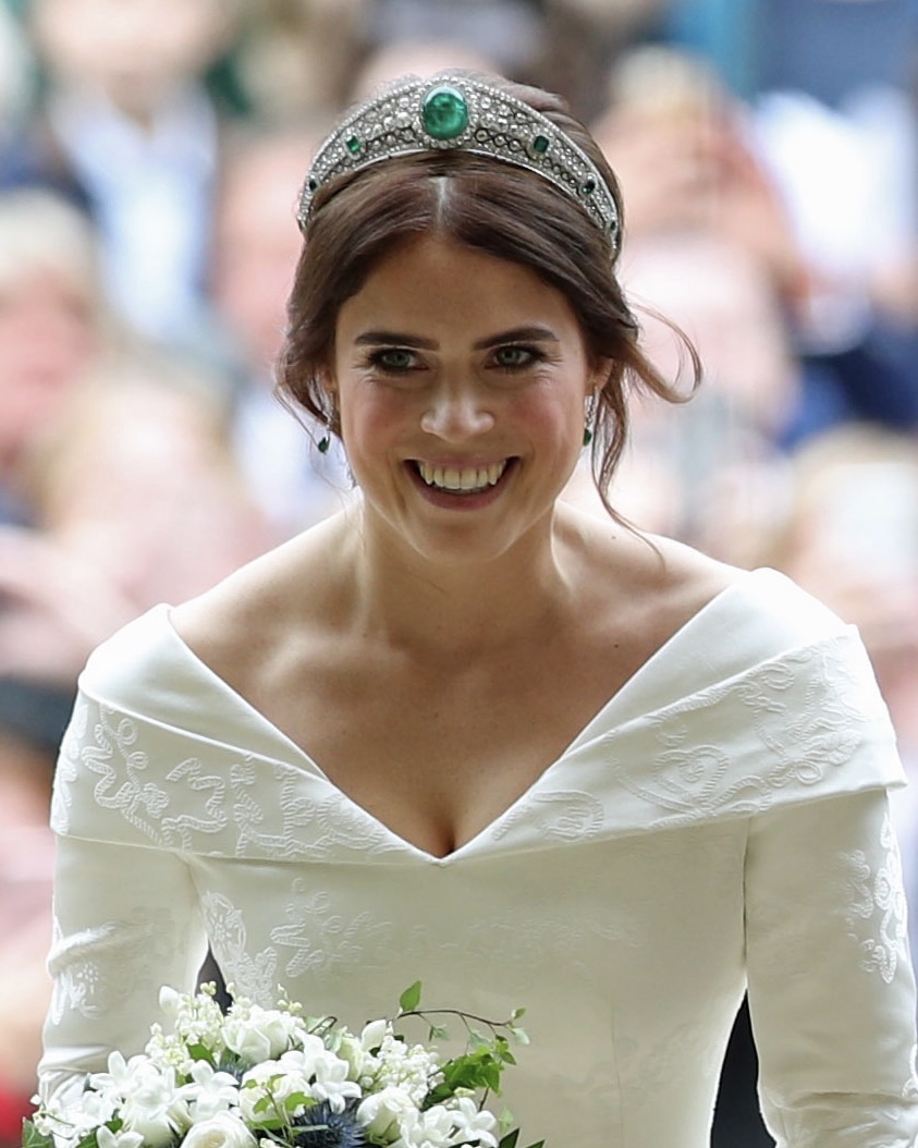 Princess Eugenie wore the Greville Emerald Kokoshnik Tiara for her wedding to longtime love Jack Brooksbank at St. George’s Chapel in 2018. Many had expected her to don the York Tiara as her wedding tiara—the same one her mother, Sarah Ferguson, wore on her wedding day—but Eugenie surprised royal watchers with a dramatic and historic choice.