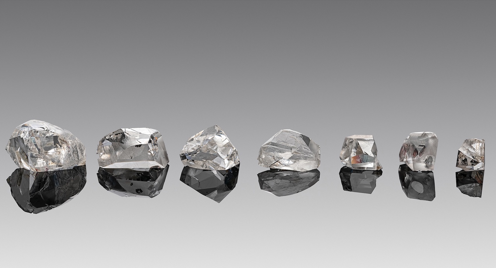 The 67 D-colour, flawless Lesotho Legend diamonds became a 25-piece Mystery Set High Jewelry ensemble by Van Cleef & Arpels. (Credit: © Ilan Taché Photography for Groupe Taché and Diamcad)