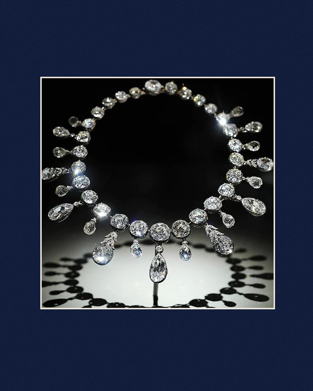 How deep can a warrior’s love be? Turns out, plenty. Napoleon was not just a great military leader, but also a patron of diamonds. So when his second wife, Archduchess Marie Louise of Austria, bore him a long-awaited heir, he showered her with 263 carats worth of diamonds in 1811. The Napoleon Diamond Necklace, as it is called, consists of 28 old mine-cut diamonds, five pear-shaped diamonds, four oval diamonds, and 10 briolettes. Above each pear is mounted a small brilliant diamond, while the four ovals are attached to motifs decorated with 23 smaller diamonds. Each of the 10 briolette mountings is set with 12 rose-cut diamonds. A grand push present, for a grand gift of love!