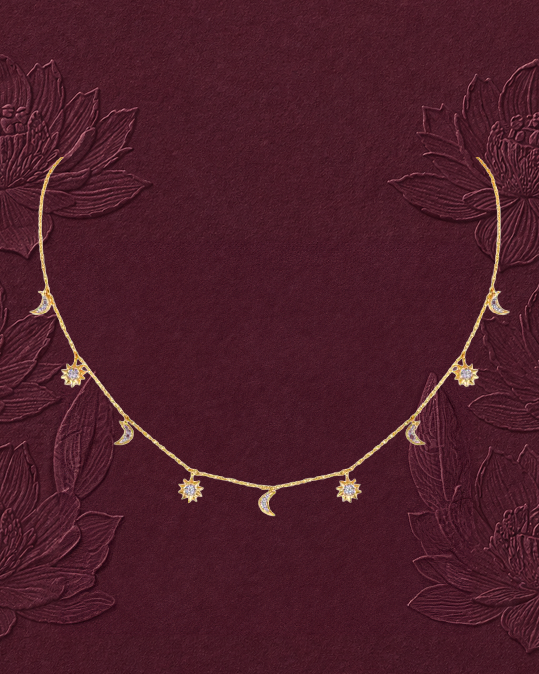 Gold and diamond jewellery have a deep, interwoven history with Indian culture. Think of the goddess Lakshmi, draped in gold jewellery, sitting atop the lotus as she creates rain with gold coins. There’s also the Navaratna (nine gems) of Hindu astrology, which features the natural diamond as a cosmic gemstone, symbolic of Shukra (planet Venus) that governs all the beauty, love and art of the cosmos.