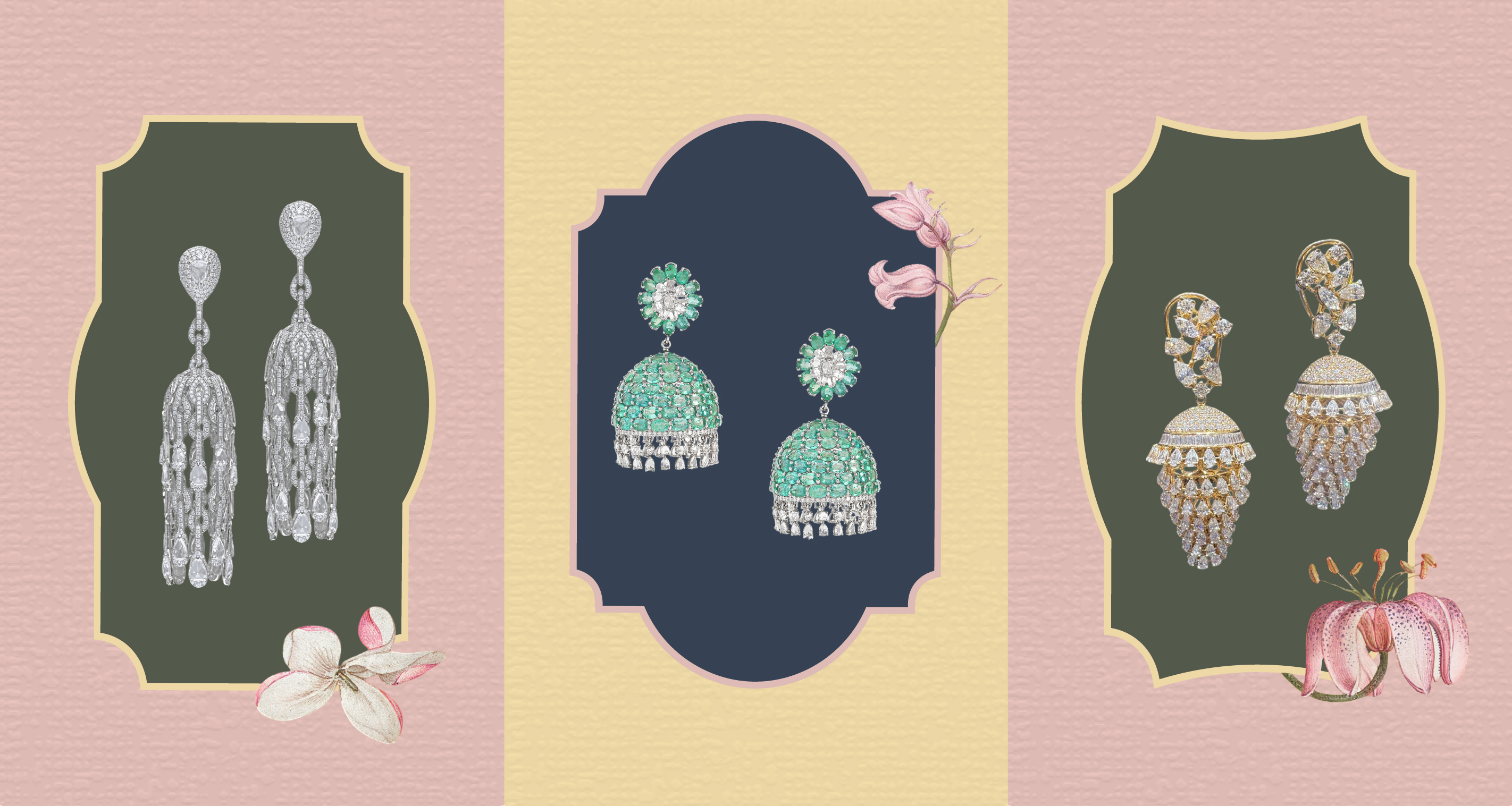Modern design influences have further breathed novelty into this ancient form. Art Deco-inspired diamond jhumkas that feature clean lines and geometric clarity. Precise angles and symmetrical brilliance that echo the ‘20s aesthetic. Baroque-inspired pieces that embrace irregular shapes and dynamic movement. Victorian influences in milgrain detailing and floral motifs reimagined in natural diamonds, while Mid-Century Modern sensibilities bringing sculptural forms with minimal embellishment.